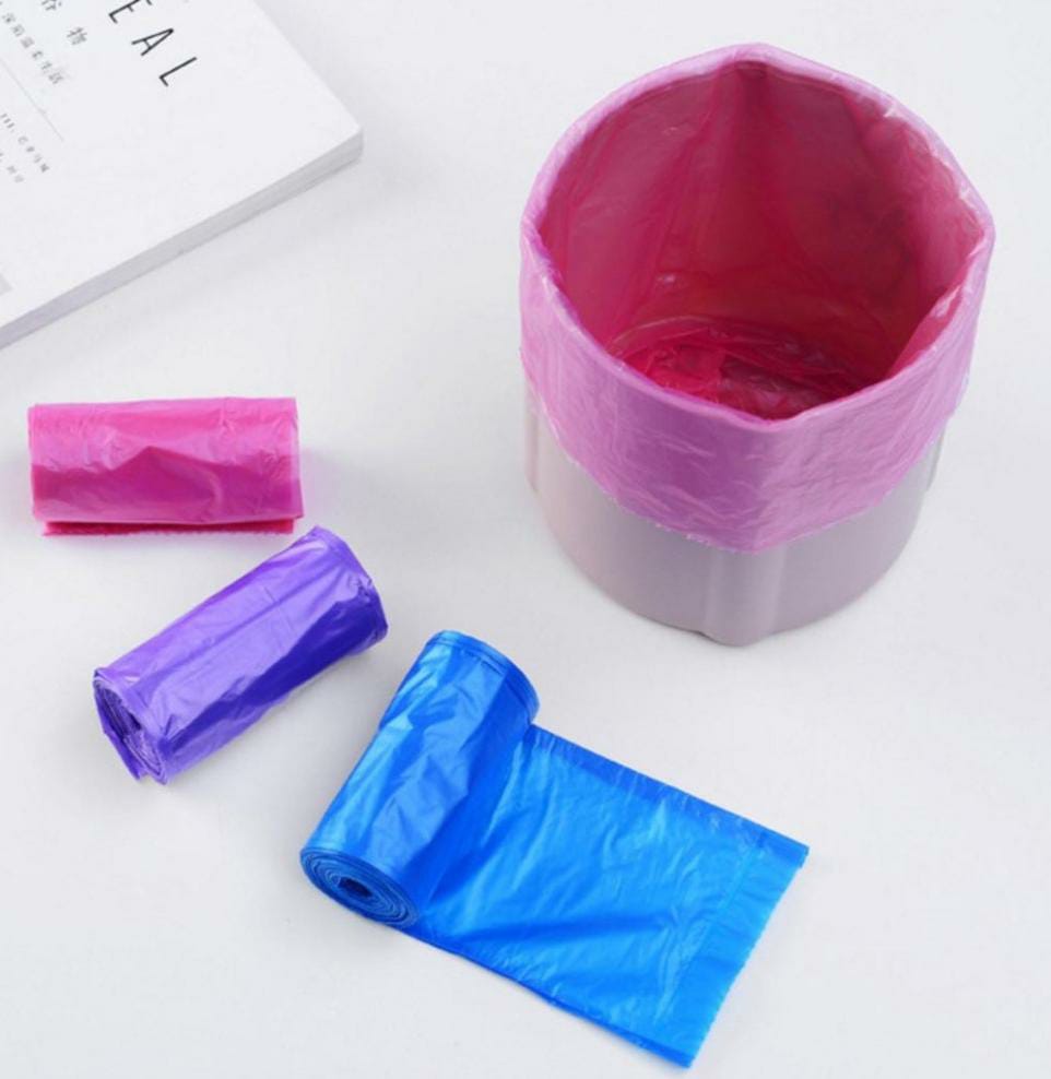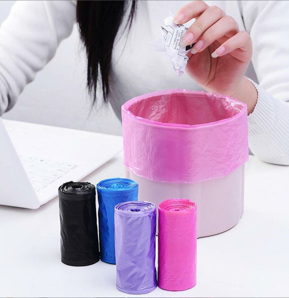 علبة تحتوي على 6 رول اكياس قمامة بألوان مختلفة